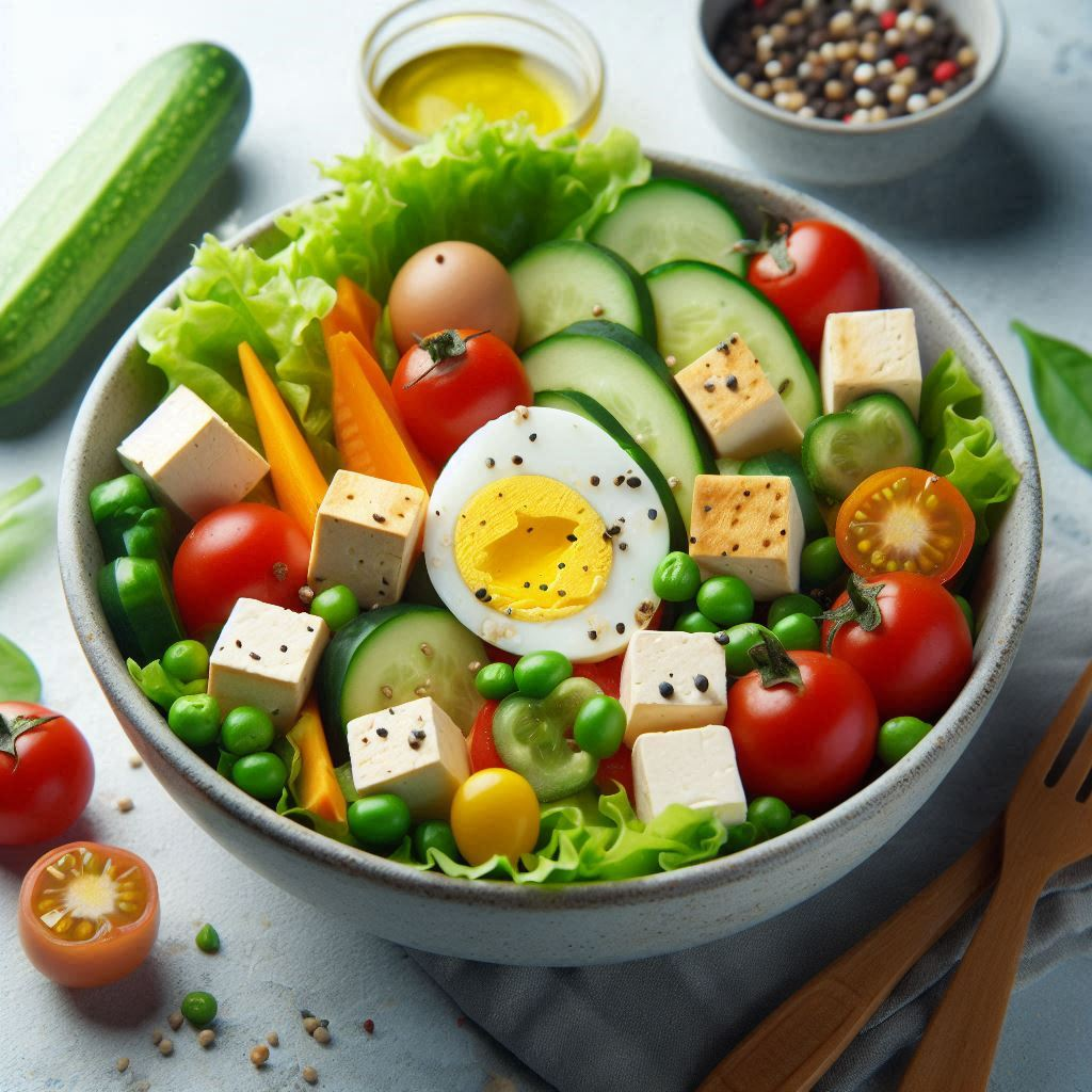 아침 두부 샐러드 + 삶은 달걀 + 저당 요거트